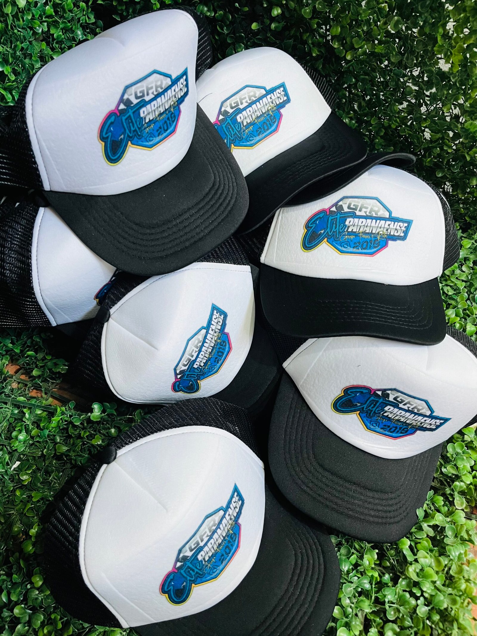 Gorras trucker personalizadas con frente rígido apto para estampa y parte trasera de red que aporta ventilación. Visera curva y cierre regulable para un calce cómodo.