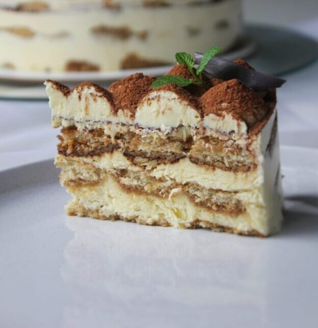 Postre italiano que intercala vainillas embebidas en café de especialidad, con crema de mascarpone y cacao amargo. Se sirve bien frio.